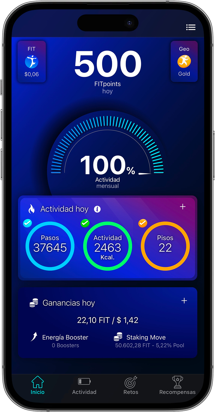 ¿Ya te mueves todos los días? ¡Genial!. Solo te falta empezar a ganar por eso. FITtoken convierte tu actividad física en recompensas reales, mejorando tu rutina con metas diarias. ¡Menos excusas, más acción!