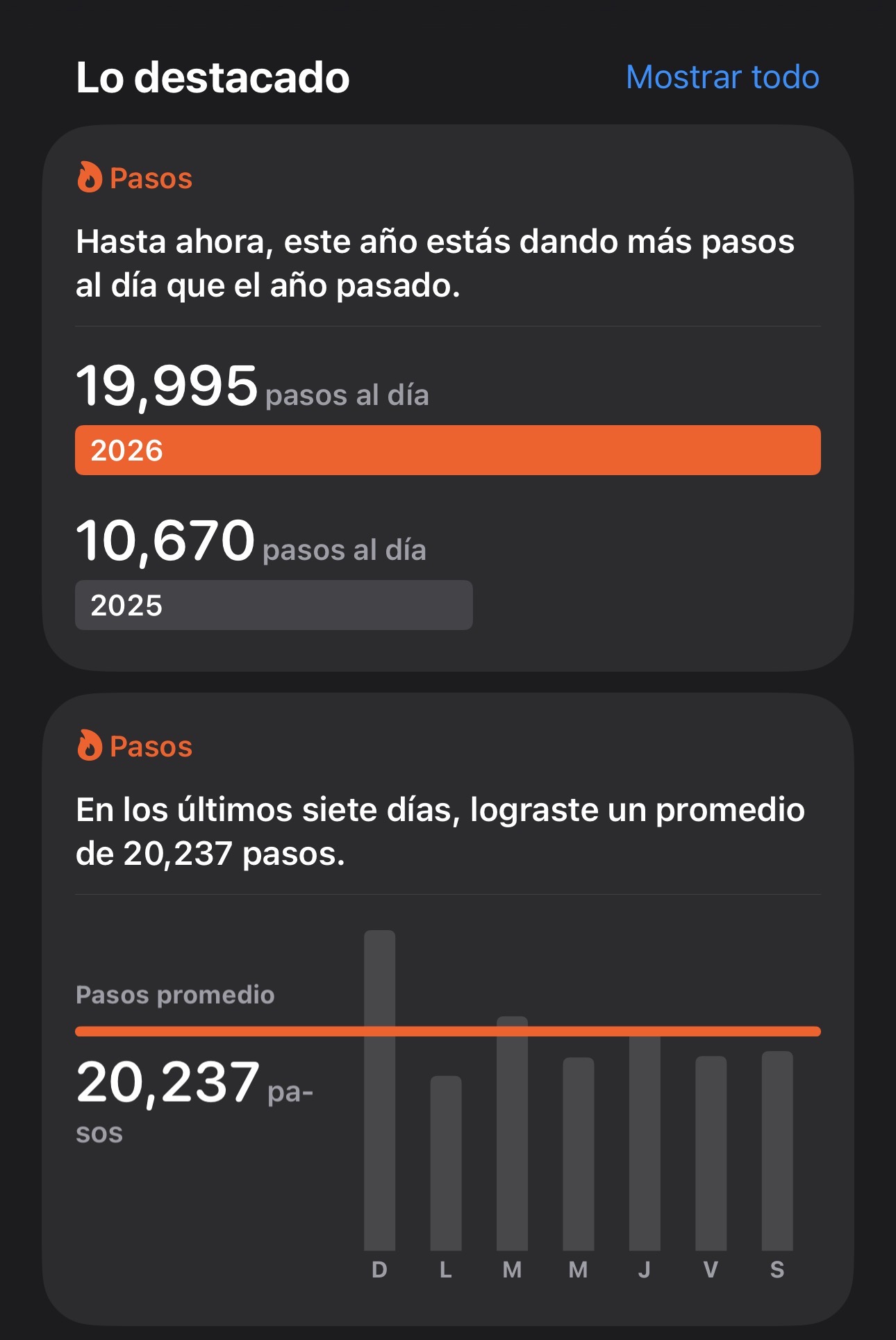 Todo lo tengo organizado y medido para cumplir con mi meta todos los días y superar +15,000 pasos diarios, +900 kcalorias quemadas y +20 pisos subidos